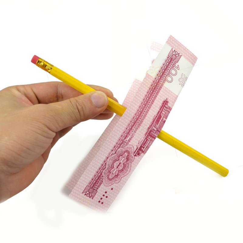 You proceed to use a pencil to pierce a hole in the centre of the note, there’s no doubt that the pencil is truly through the money. Watch the audience gasp (especially the money owner) at what happens next…you rip the pencil through the money, the audience clearly sees the pencil rip through and they can hear the sound of paper ripping! Yet, somehow the note is left completely unharmed!